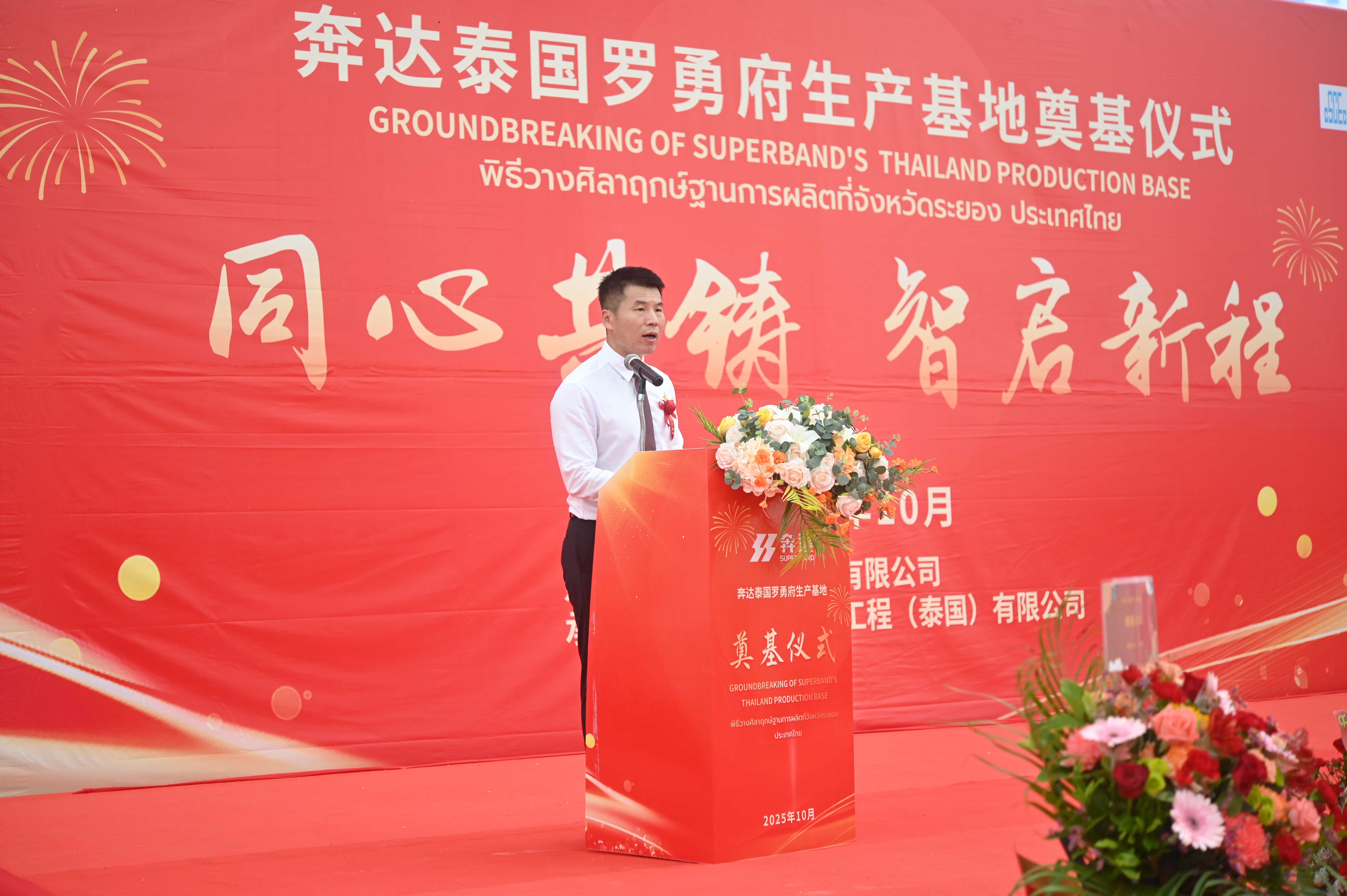 公司副总经理、泰国奔达有限公司法人代表黄毅在致辞中表示,泰国新工厂是奔达首个海外制造基地,标志着公司国际化战略的实质性落地。他将带领团队以开放、学习的心态融入当地市场,将泰国基地建设成为中泰经贸合作中的亮丽名片。