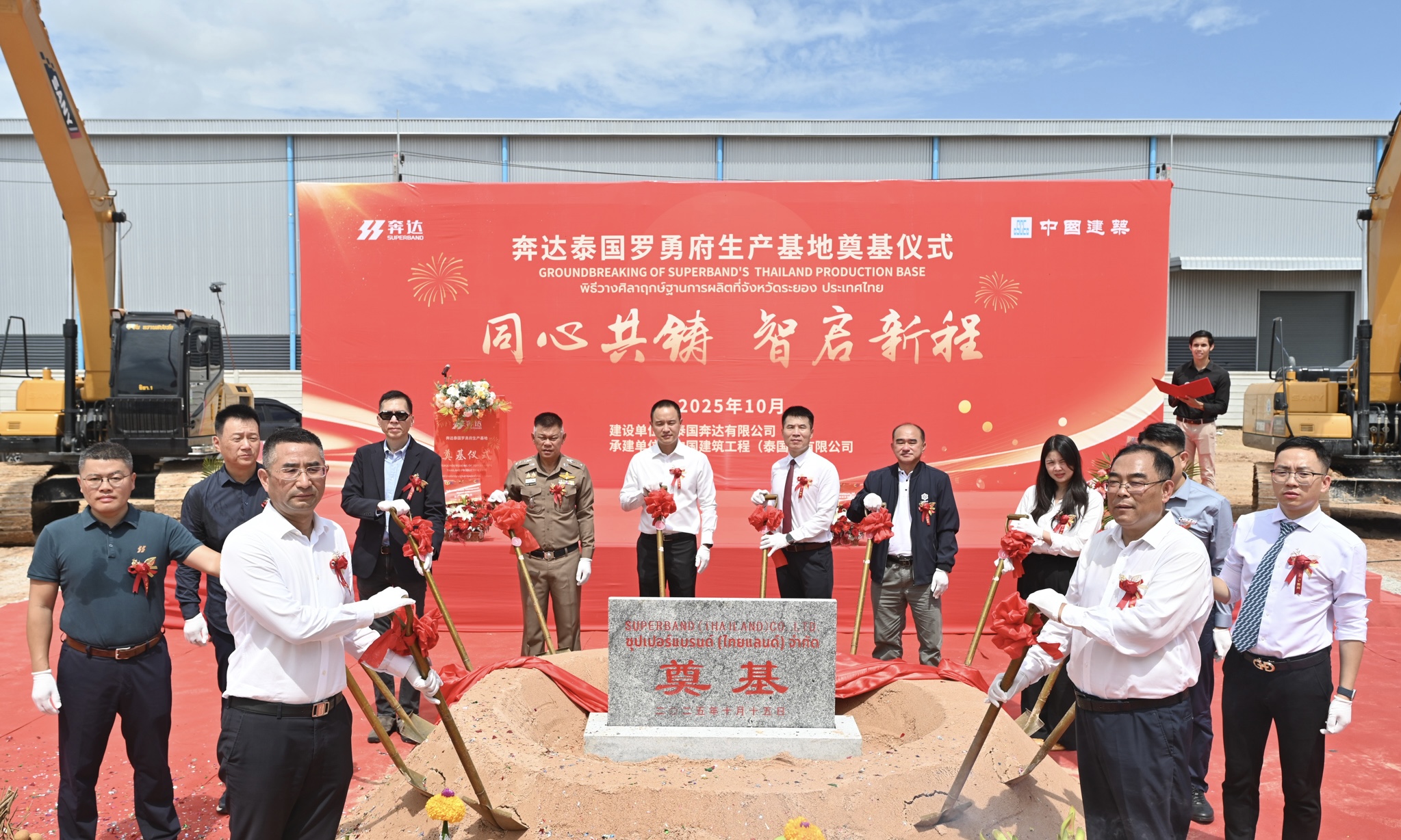 2025年10月15日,佛山市南海奔达模具有限公司在泰国罗勇府CPGC工业园隆重举行泰国生产基地奠基仪式。公司高层领导、泰国罗勇府政府官员代表、CPGC工业园管理层代表、公司大客户代表、承建方团队等近五十位嘉宾齐聚一堂,共同见证这一具有里程碑意义的重要时刻。